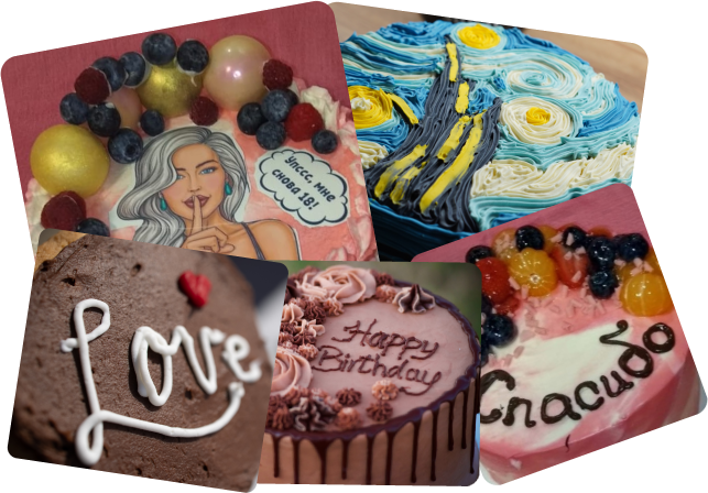 Нанесение надписей на любом языке, картинок и фотографий, тематических фигурок в дополнение к основному оформлению, подчеркивающих то событие, которое вы решили украсить столько красивым и вкусным подарком